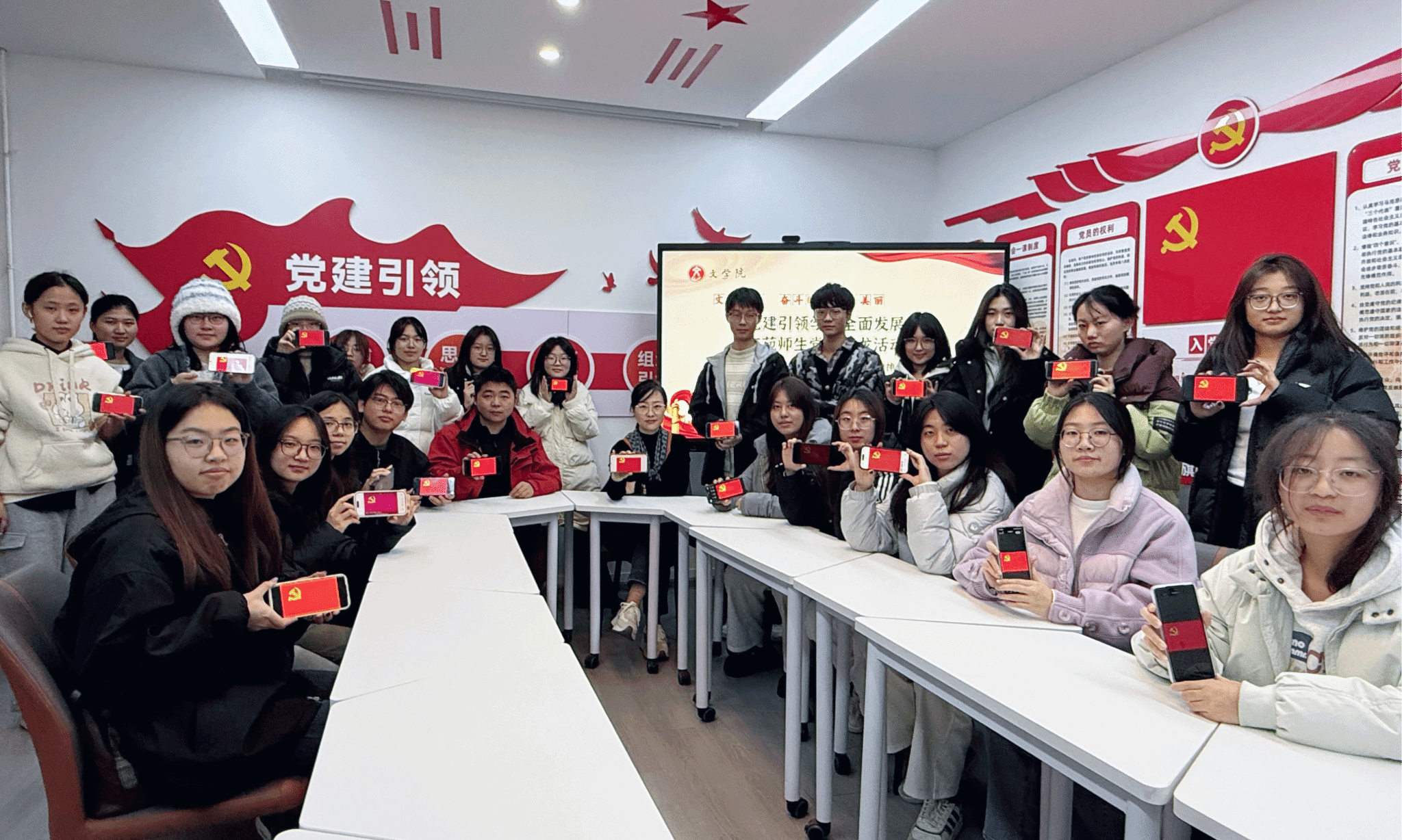 11月22日,文学院开展师生党建沙龙。学院党总支书记朱芳芳与20 余名学生党团干部代表共叙成长。